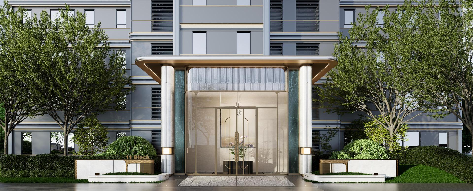 Functionally, the project redefines homecoming experience through a threefold ceremonial sequence: an entrance lobby embodying a sense of ritual, a “community living room” highlighting spatial narratives, and a green island for nature integration. Shared green spaces, healing gardens, and a children’s playground compose inclusive lifestyle scenes for all ages, catering to elite residents in pursuit of refined, tranquil living.