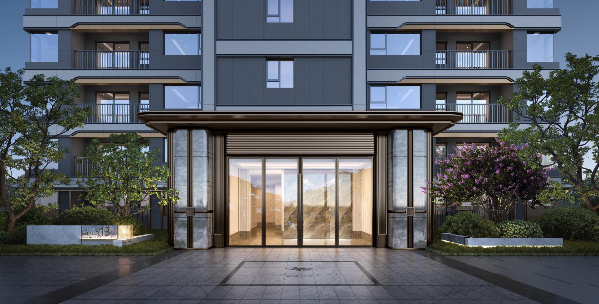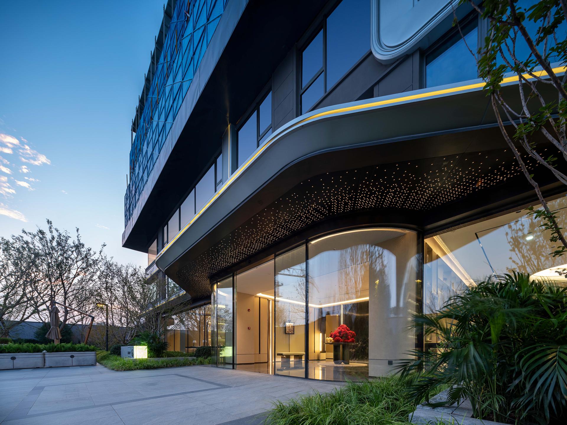 Guided by the vision of "poetic nature, comfortable living, and luxury living," Longfor Inner Land project is designed with a 13,000㎡ U-shaped park wrapping around three sides of the community. This green belt connects to an existing river, links with the outdoor leisure spaces of the Longfor Paradise Walk mall and the riverside green corridor, and enhances the overall ecological landscape. Drawing inspiration from the natural aesthetics of Hoshinoya, the landscape design integrates elements of Qilu culture, Qingdao’s mountain-and-sea imagery, and Shandong embroidery, creating a spiritual retreat where nature and culture harmonize. The layout, inspired by the interlaced elegance of a Bvlgari necklace, maximizes views and green access, allowing architecture and landscape to coexist in synergy.he The custom-designed lobby entrance enhances the residents' homecoming experience.
