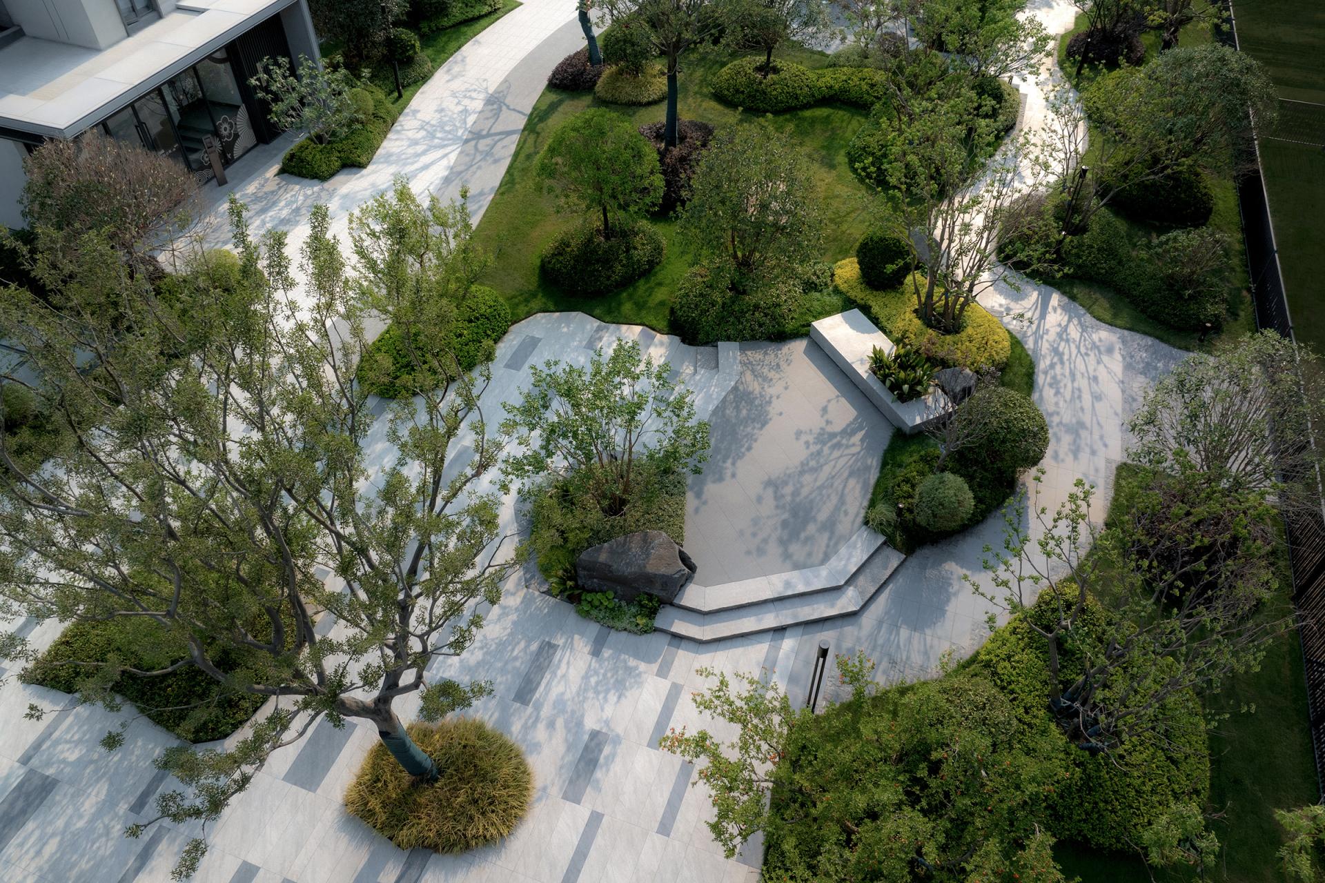 Addressing site challenges, the design introduces unobstructed wind corridors and reflective surfaces to optimize light and air flow within the sunken courtyard. Three-dimensional circulation paths, hotel-style arrival sequences, and carefully layered tree canopies soften vertical pressure from surrounding buildings. Material transitions are refined and sustainable strategies such as tiered rain-garden systems and resilient stone selections ensure long-lasting vitality.