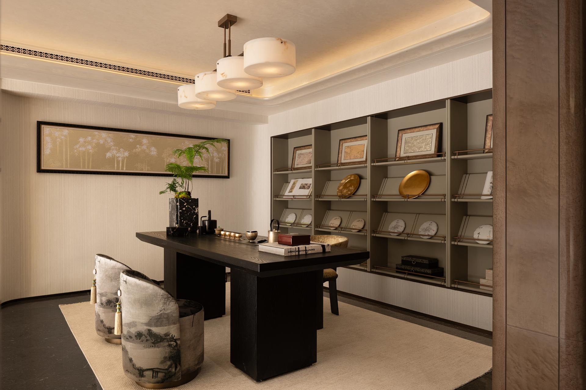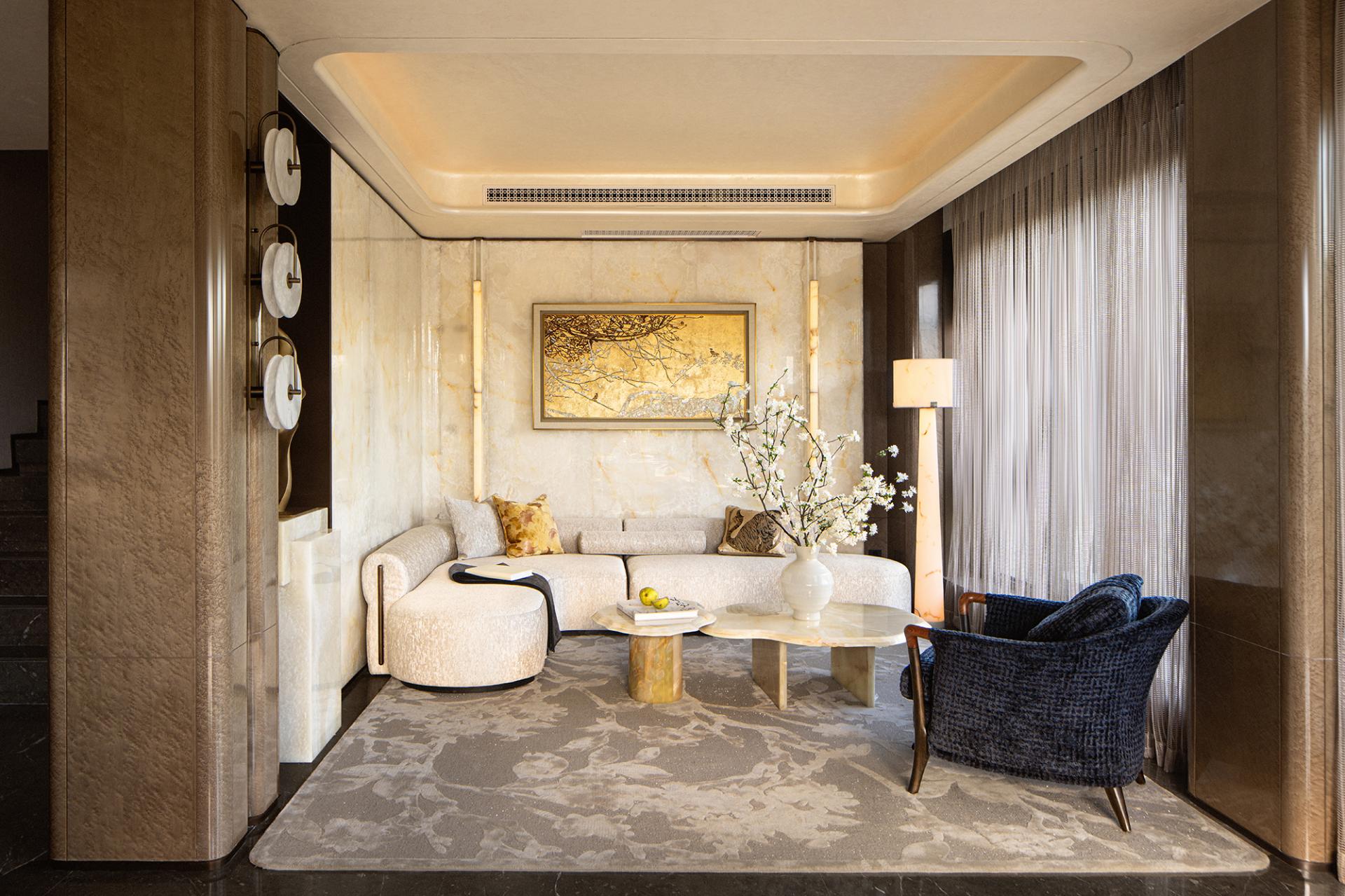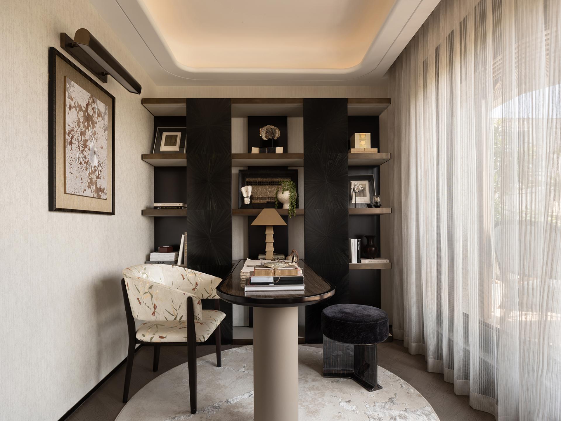This project aims to create a premier residence that blends Eastern philosophical elegance with modern Italian luxury. Drawing inspiration from the simplicity, refinement, and neutral tones of Armani/Casa, the design avoids excessive ornamentation, allowing the innate luxury of materials, structural aesthetics, and meticulous craftsmanship to interpret a serene and noble “Eastern hidden luxury.” The result is a modern retreat that is not only luxurious but also rich in cultural depth and a sense of belonging.The courtyard spans five levels: the three above-ground floors serve as family living areas, while the two underground floors are dedicated to entertainment and guest reception. The palette is dominated by premium gray, white jade, and deep wood tones, accented with ink green, bronze, mother-of-pearl gloss, and soft pastels. The hardscape emphasizes clean lines and pure materiality, while the soft furnishings incorporate the modern comfort of top-tier Italian furniture and the traditional charm of Eastern artistry, achieving harmony through contrast.The elder suite is designed as a serene retreat inspired by classical landscapes. The girl’s room is designed as a "secret garden," where soft furnishings and a view of the willow-lined moat outside blend to create a gentle, romantic, and imaginative world.The family room’s balcony is designed as a "sketching platform," complete with an easel, palette, and display shelves for art supplies, enriching the functionality of the space.The underground space is designed as a palace of entertainment, ideal for elegant gatherings. The living area features extensive use of high-quality white jade stone, whose warm texture and natural veining establish a luxurious yet understated tone.The master bedroom draws inspiration from the graceful aesthetics of the Song Dynasty.