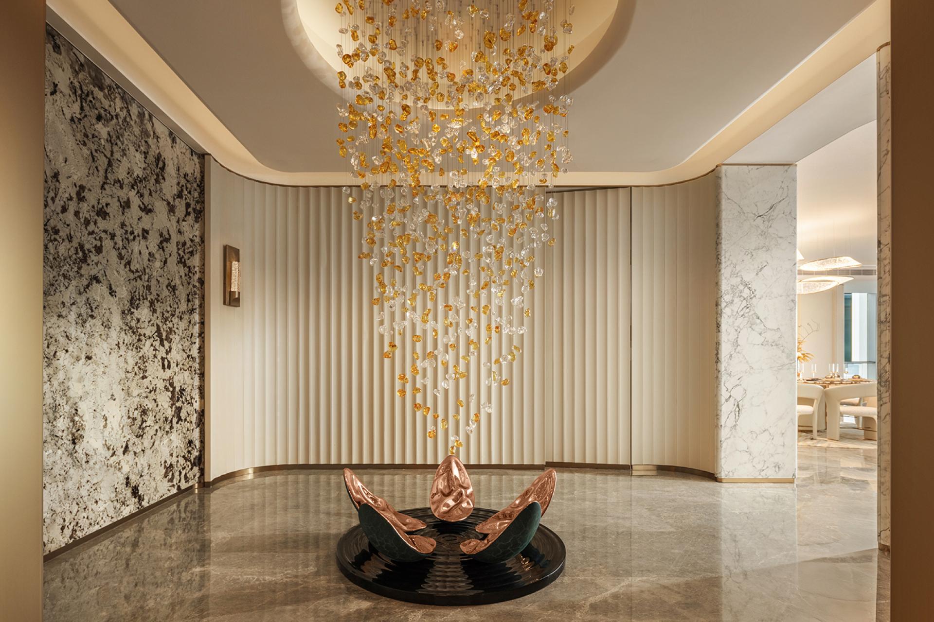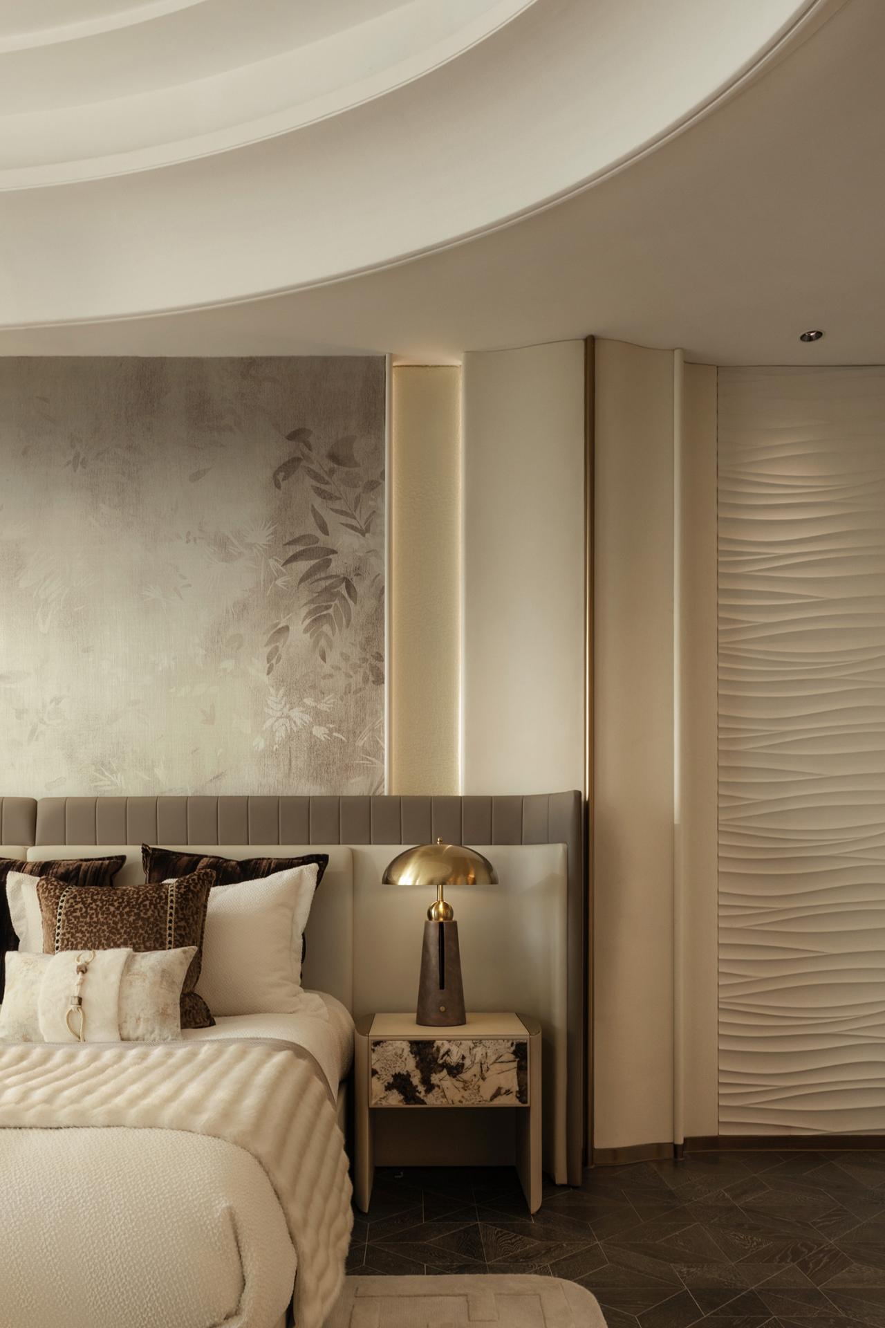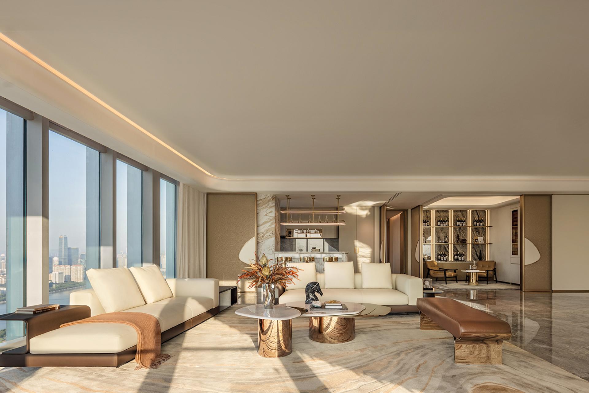 Pazhou Exhibition Tower is located in Guangzhou’s Haizhu District, occupying a prime position at the confluence of the Pearl River and the city’s central axis. The 02 unit model room, themed “Having Seen the World, Returning to Home,” creates a skyline salon of refined luxury, exploring the essence of elevated living. Inspired by the cultural heritage of the Pearl River, the design blends natural imagery of river, water, and light to craft a serene retreat that harmonizes cultural depth with modern comfort.